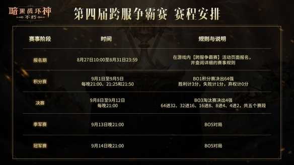 本届跨服争霸赛的各阶段安排如下: